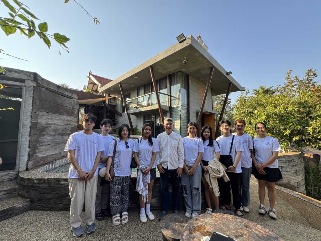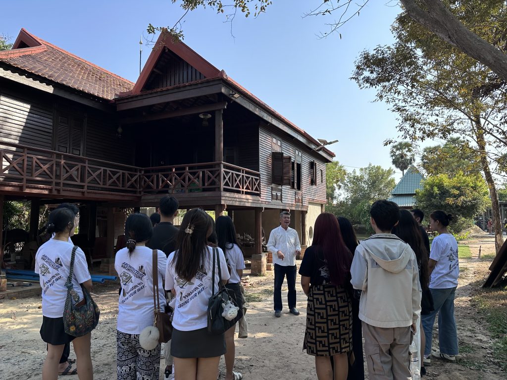 Throughout the trip, students explored architectural references ranging from ancient temples and a century-old Khmer wooden house to the private residence of Architect Hok Sokol, as well as modern housing developments such as Borey Phum Bakong.