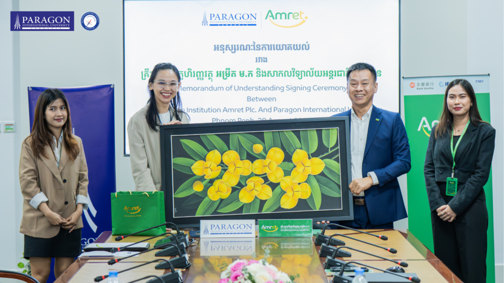 Phnom Penh, Cambodia – On Friday, 29 August 2025, Paragon International University and Amret Microfinance Institution officially signed a Memorandum of Understanding (MoU) at Amret’s Head Office.