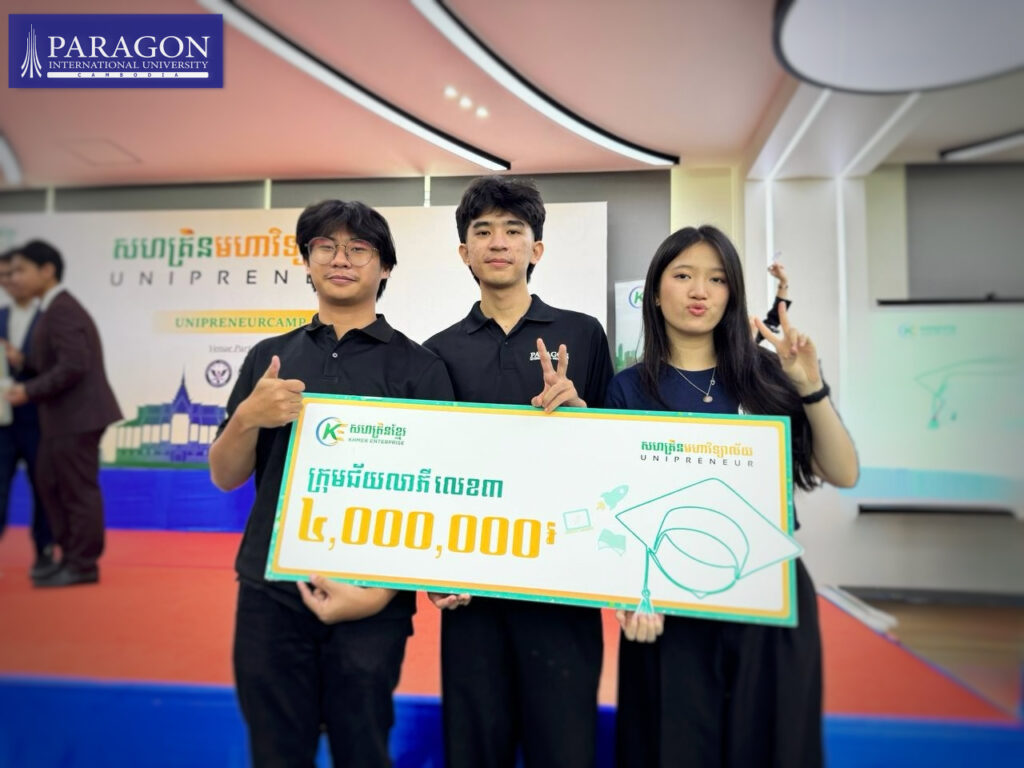 Paragon International University extends its special thanks to សហគ្រិនខ្មែរ Khmer Enterprise for organizing such an impactful and crucial event, which provides invaluable platforms for young entrepreneurs to develop and showcase their talents. Furthermore, deep appreciation to Thurawadh, the implementer of Khmer Enterprise’s UniPreneur Season 3, for meticulously delivering an outstanding program that effectively empowered these young innovators to shine brightly on a prominent stage.